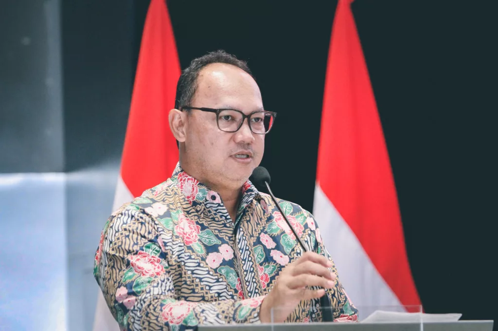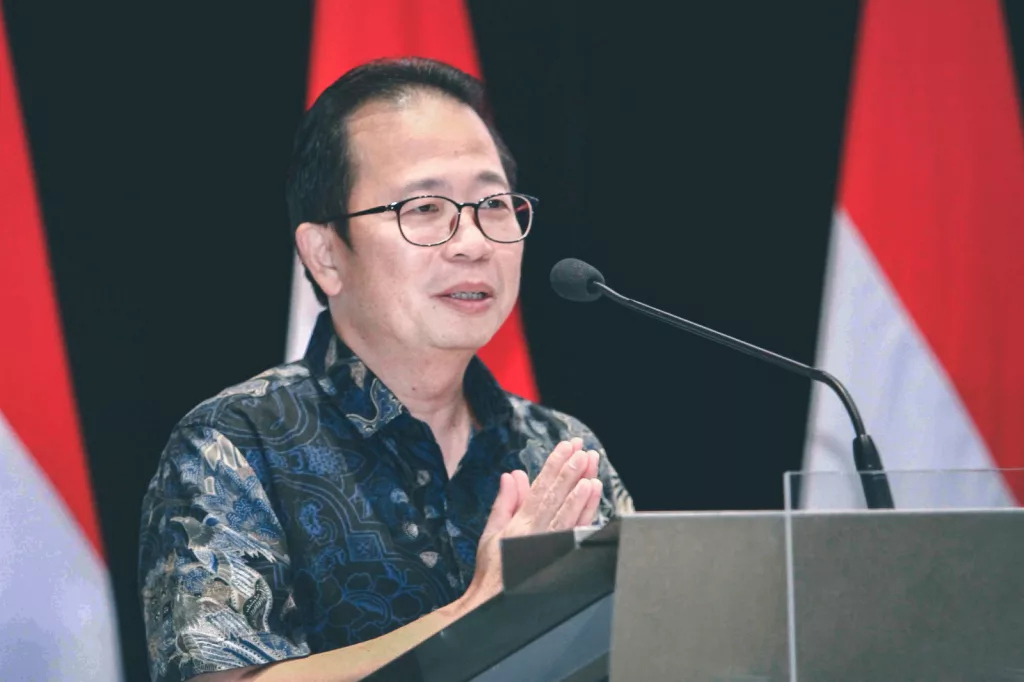 Direktur Utama PT. Aldiracita Sekuritas Indonesia Rudy Utomo memberikan sambutan pada acara launching Reksa Dana Indeks STAR Infobank15, acara diselenggarakan di Main Hall Bursa Efek Indonesia Senin 1 Agustus 2023.