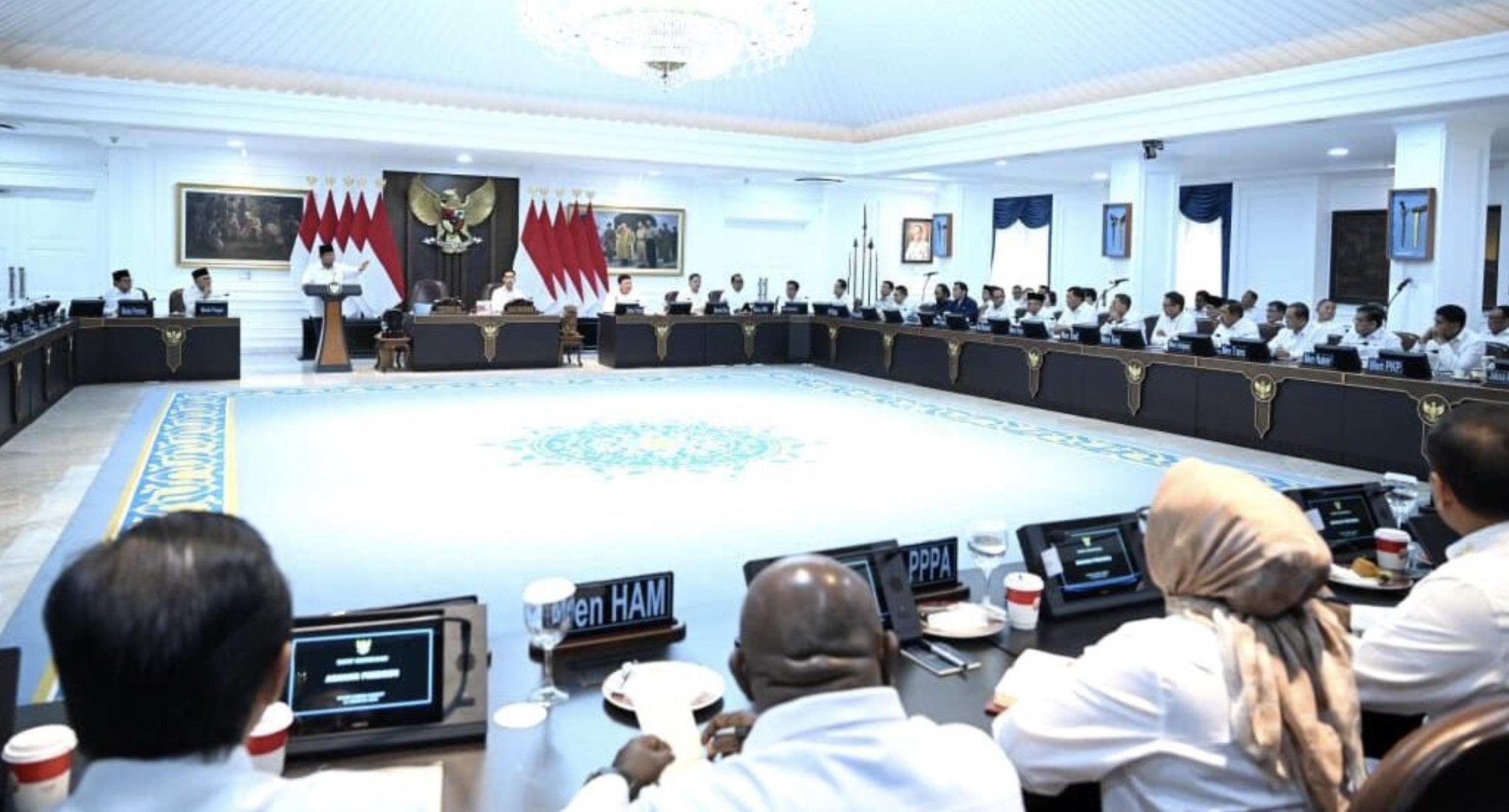 Menteri Pertahanan Sjafrie Sjamsoeddin yang ditugaskan menyampaikan hasil sidang menegaskan bahwa Presiden Prabowo terus memantau perkembangan situasi nasional. Dalam arahannya, Prabowo menekankan pentingnya soliditas antara TNI dan Polri dalam menjaga keamanan.