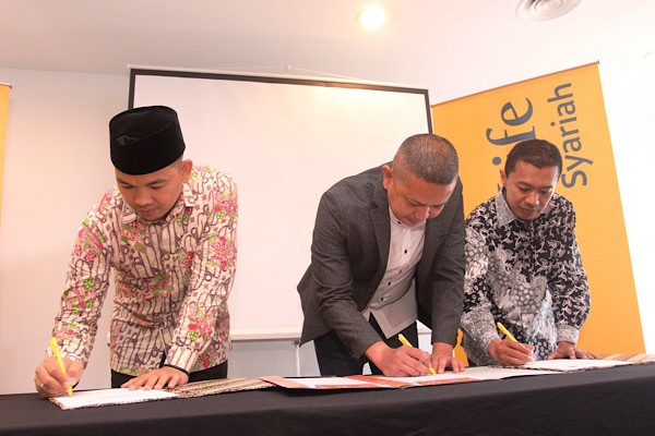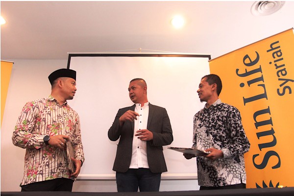PT Sun Life Financial Indonesia menandatangani nota kesepahaman bersama dua pengelola aset wakaf (nazhir) Wakaf Al-Azhar dan Baitul Wakaf. Kerja sama ini mengukuhkan komitmen Sun Life dalam menghadirkan pilihan lebih luas bagi masyarakat dalam menyalurkan dana wakaf mereka, sekaligus mendukung upaya pemerintah dalam mengoptimalkan potensi dana wakaf di Indonesia. Tampak pada gambar Norman Nugraha, Chief Sharia Business PT Sun Life Financial Indonesia (tengah) bersama Ust. Ahmad Ahidin Direktur Eksekutif Wakaf Al-Azhar dan Rama Wijaya, Direktur Baitul Wakaf (kanan) di Jakarta, Senin (9/3/2020). (*)
