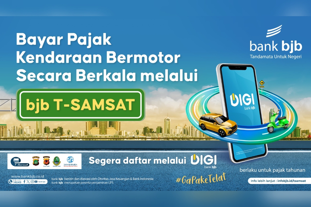 BANDUNG – bank bjb menghadirkan solusi praktis bagi masyarakat dalam membayar pajak kendaraan bermotor. Melalui layanan bjb T-Samsat di DIGI bank bjb, wajib pajak kini bisa melakukan pembayaran dengan mudah, cepat, dan tanpa antre.