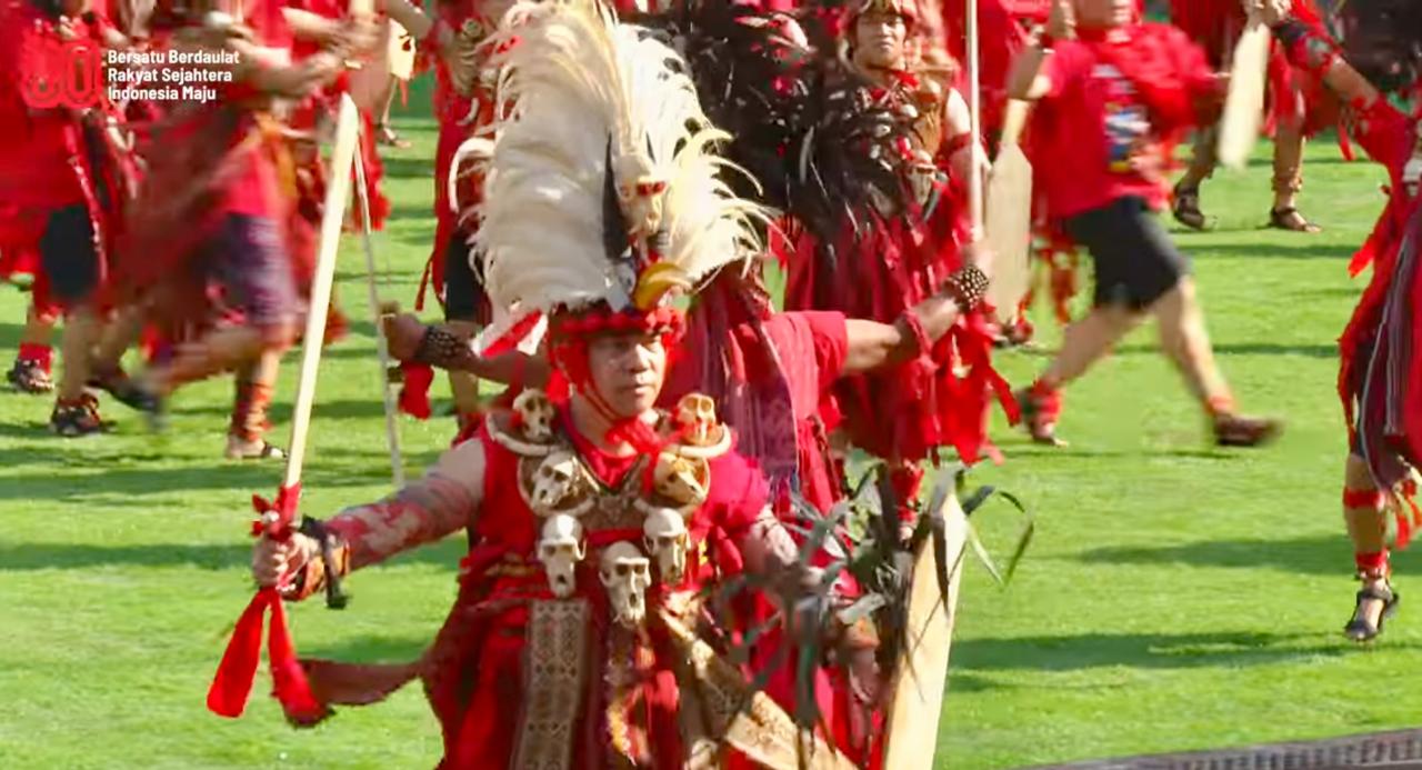 Setiap hentakan kaki, setiap ayunan tombak, dan setiap sorot mata penari adalah bahasa visual yang berkata: “Kami hadir untuk Indonesia, dengan keberanian dan persatuan”