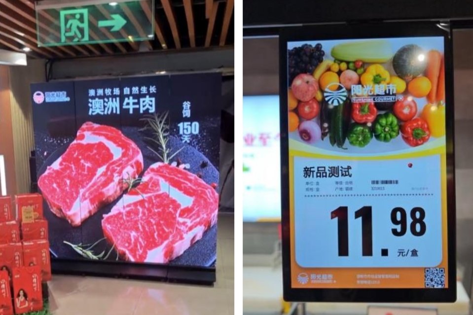 Untuk meningkatkan pengalaman berbelanja di dalam toko, telah dipasang layar tablet berukuran 10,1 inci di area produk segar dan daging. Layar ini menampilkan informasi produk secara jelas dan real-time, termasuk harga dan promosi.