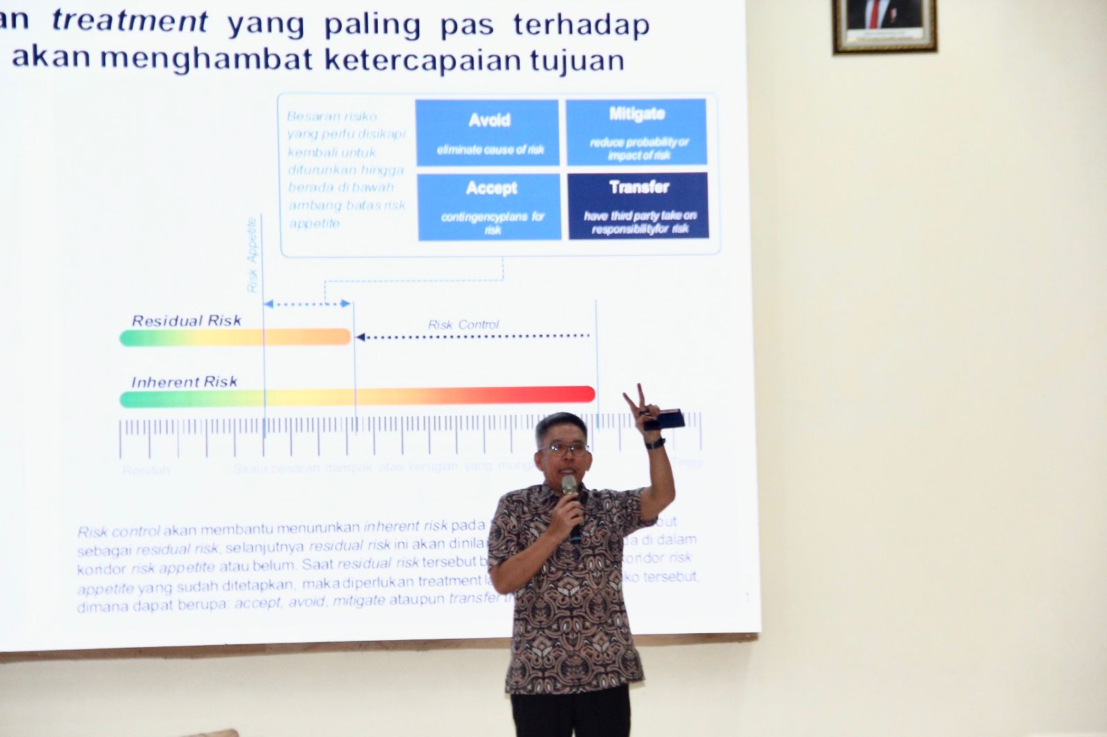 Lewat materi interaktif, mahasiswa mendapatkan pemahaman mengenai konsep risk management, risk appetite,serta empat metode risk treatment: avoid, mitigate, accept, dan transfer.