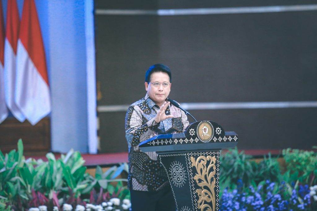 Direktur Utama PT Bank Syariah Indonesia Tbk (BSI) Hery Gunardi tengah memberikan sambutan disela acara penandatanganan nota kesepahaman tentang pemanfaat produk dan layanan perbankan syariah dangan Lemhannas, di Jakarta.