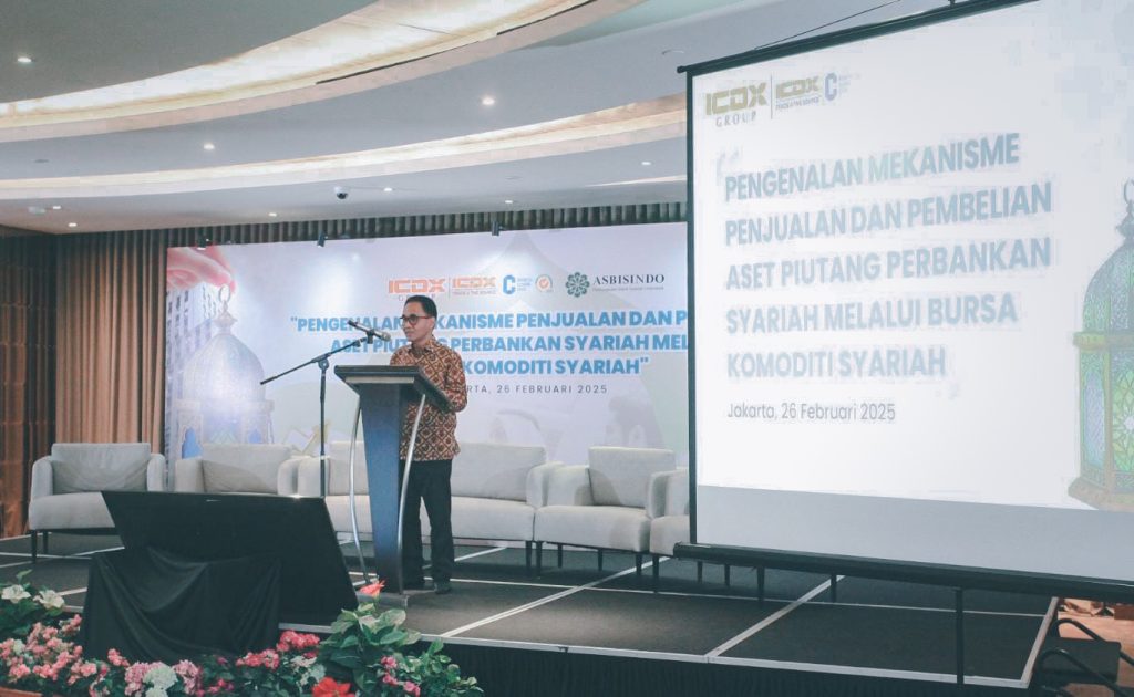 Perwakilan Asbisindo tengah menyampaikan sambutan saat acara diskusi ekonomi syariah, di Jakarta.Kepala Badan Pengawas Perdagangan Berjangka Komoditi Tirta Karma Senjaya, Ketua Asosiasi Perbankan Syariah Indonesia (Asbasindo) Herbudi S Tomo, Direktur Indonesia Commodity & Derivatives Exchange (ICDX) Nursalim dan Analis Senior Direktorat Pengaturan dan Pengembangan Perbankan Syariah – Otoritas Jasa Keuangan (OJK) Ardiansyah Rakhmadi (kiri ke kanan) berbincang disela acara diskusi Ekonomi Syariah, dengan topik “Mekanisme penjualan dan pembelian asset piutang (Subrogasi) perbankan syariah melalui Bursa Komoditi Syariah”, yang diselenggarakan ICDX di Jakarta, Rabu, 26 Februari 2025.