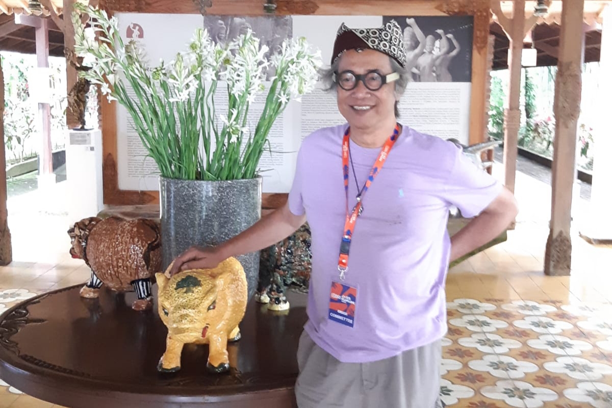 “Karena ada celeng dari Majapahit, saya merespons dengan mewarnainya. Inilah responsnya pada 2017. Baru hari ini, loh, kok ternyata bisa pas (dengan situasi sekarang),” tutur Butet.