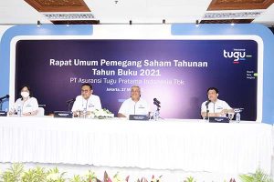 Komisaris Tugu Insurance Amelia Kurniawan, Presiden Komisaris Tugu Insurance Koeshartanto, Presiden Direktur Indra Baruna dan Direktur Keuangan & Layanan Korporat Emil Hakim (kiri ke kanan) disela Rapat Umum Pemegang Saham Tahunan (RUPST) di Jakarta, Selasa, 17 Mei 2022. Di tengah kondisi ekonomi yang masih terpengaruh dampak pandemi Covid-19, Tugu Insurance berhasil mencatatkan peningkatan kinerja baik secara konsolidasian maupun induk di akhir tahun buku 2021 (audited) disertai tingkat Risk Based Capital (RBC) 405,13% yang berada jauh di atas ketentuan batas minimum Otoritas Jasa Keuangan (OJK) yaitu sebesar 120%. Adapun pada pelaksanaan RUPS Tahunan kali ini Pemegang Saham telah memutuskan adanya perubahan susunan pengurus perseroan. Tugu Insurance menunjuk Tatang Nurhidayat sebagai Presiden Direktur. Menyusul pengunduran diri Indra Baruna pada Maret 2022, yang telah memimpin Tugu Insurance sejak Desember 2017.
