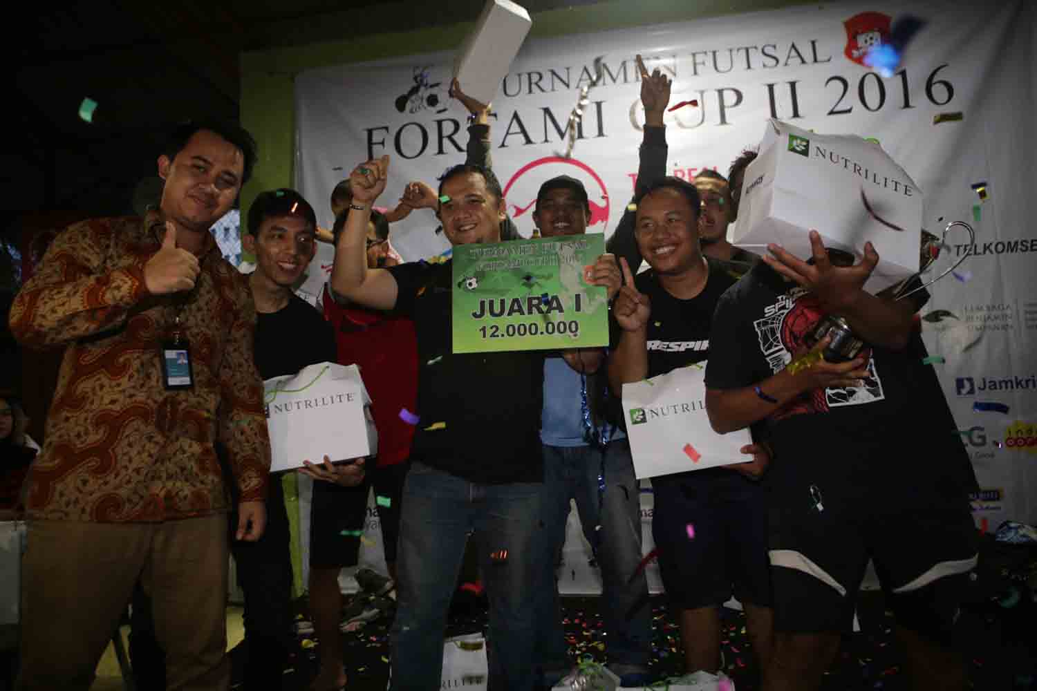 Corporate Communications PT. AIA Financial Indonesia Sandra Darmosumarto (kelima dari kiri), Head of Corporate Affairs CITI Indonesia Elvera N Makki (tengah), dan Manager Humas PT. Pegadaian (Persero) Basuki Tri Andayani (ketiga dari kanan) berfoto bersama dengan peserta usai membuka turnamen futsal Fortami Cup II 2016 di Jakarta, Sabtu 30 April 2016. Turnamen yang bertujuan untuk menjalin silaturahim antara pekerja media dengan perusahaan ini diikuti oleh 24 tim, yang terdiri dari 12 tim korporasi, 8 tim forum wartawan putra, dan 4 tim forum wartawan putri dengan total hadiah sebesar 97 juta rupiah.(*)