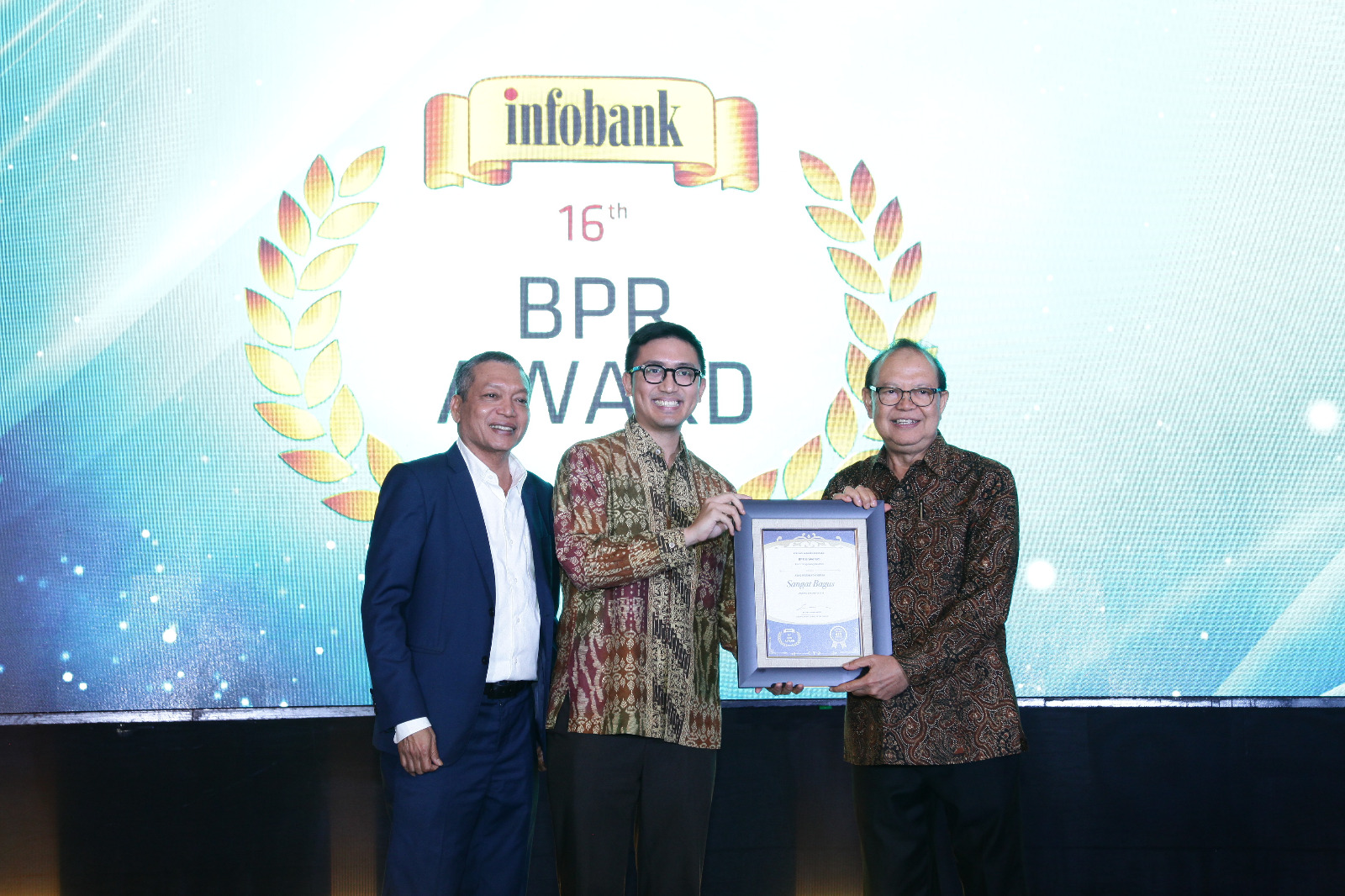 Penghargaan diberikan oleh Bankir Senior Sigit Pramono dan Chairman of Infobank Eko B. Supriyanto kepada Direktur Utama Universal BPR Reyhan Satyahadi.