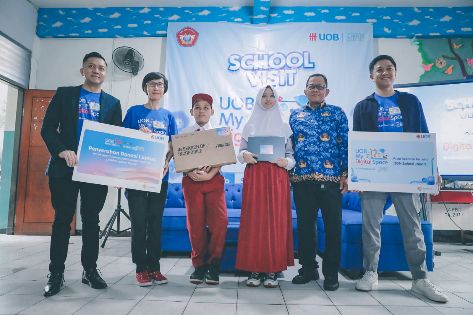 Program UOB My Digital Space merupakan bagian dari inisiatif regional yang bertujuan mengentas kesenjangan digital serta menghadirkan akses pembelajaran berkualitas bagi generasi muda. Di Indonesia, komitmen ini hadir melalui kemitraan dengan Ruangguru dan berfokus pada dukungan pendidikan bagi anak-anak dan pelajar di Asia Tenggara termasuk di Indonesia. Dalam kunjungan ini, UOB menyerahkan donasi laptop kepada A. Basyuni, Kepala Sekolah SDN Bekasi Jaya 1, guna mendukung pembelajaran digital siswa.