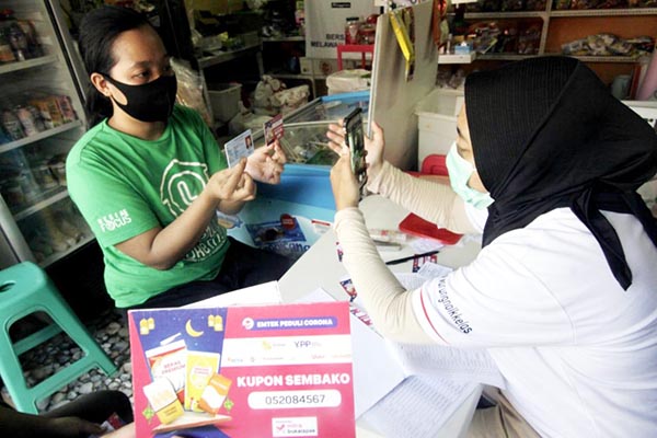 Warung amat salah satu mitra bukalapak (MBL) di Jakarta berpartisipasi dalam program pilot penyaluran bantuan sosial melalui warung tradisional kepada masyarakat yang membutuhkan, Jakarta, Selasa (19/5).Selain ditujukan untuk memenuhi kebutuhan pangan harian warga miskin, 10 ribu paket sembako yang disalurkan merupakan wujud nyata dari komitmen Bukalapak untuk memberdayakan warung di tengah masa pandemi. Koran Jakarta/Wahyu AP