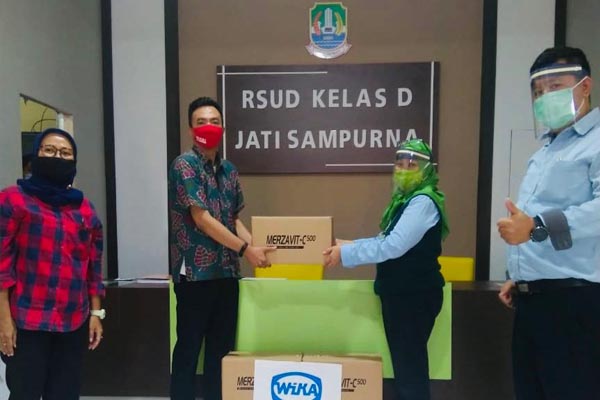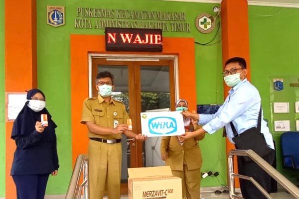 Karyawan PT WIJAYA KARYA (Persero) Tbk. [WIKA] tengah memberikan bantuan berupa 5.000 tube vitamin untuk penanggulangan Covid-19 di Jakarta Timur, Senin 13 Juli 2020. Bantuan tersebut disalurkan bagi para tenaga medis yang bertugas di 7 Puskesmas dan RSU Kelas D yang tersebar di Kecamatan Makassar, Kramat Jati, Cipayung dan Duren Sawit, Jaktim. Pemberian bantuan tersebut diharapkan dapat menjaga stabilitas kesehatan tim medis sebagai garda depan penanganan Covid-19.