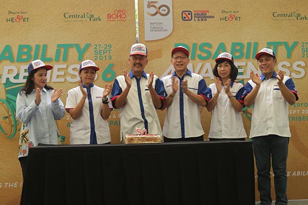 Asst. Marcomm & Relations General Manager Central Park & Neo Soho Mall, Silviyanti Dwi Aryati Pengurus Yayasan Agung Podomoro Land  (YAPL), Prisca Batubara, Ketua Bidang Keagamaan YAPL, Noer Indradjaja, Wakil Ketua YAPL, Serian Wijatno, Ketua Bidang Pendidikan dan Sosial YAPL Hidayat Bakrie (kiri ke kanan) berfoto bersama saat acara khusus di bidang sosial bertajuk “Disability Awareness 6; Fashion, Musik, Karya dan Seni Disabilitas” di Jakarta, Jumat 27 September 2019. Kegiatan ini bertujuan untuk mensosialisasikan kepada masyarakat umum bahwa anak-anak berkebutuhan khusus ini istimewa dan juga memiliki berbagai keahlian seperti anak-anak lainnya. Diharapkan kegiatan ini dapat meningkatkan kesadaran masyarakat umum untuk lebih menghargai anak-anak berkebutuhan khusus.