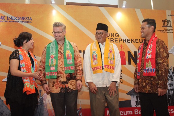 Oswar Muadzin Mungkasa, PLT. Deputi Gubernur Bidang Budaya dan Pariwisata Pemerintah Provinsi DKI Jakarta (paling kiri), Dandy Indarto Seno Kepala Divisi Museum Bank Indonesia (kedua dari kiri), Elvera N. Makki, Director, Country Head of Corporate Affairs Citi Indonesia (ketiga dari kanan), serta Hans Thulstrup, perwakilan Direktur UNESCO Office Jakarta (kedua dari kanan), berbincang bersama salah satu penerima manfaat dari Young Entrepreneur Gathering 2019. Acara yang berlangsung selama 3 hari merupakan bagian dari Creative Youth at Indonesian Heritage Sites (Pemberdayaan Industri Kreatif Generasi Muda di Situs Warisan Budaya Indonesia), sebuah program Corporate Social Responsibility dari Citi Indonesia dan UNESCO Office Jakarta dengan didukung pendanaan oleh Citi Foundation. Selama berlangsungnya acara, sebanyak 100 generasi muda yang bergerak di industri kreatif di wilayah Kota Tua, Jakarta, akan berkesempatan untuk mengikuti lokakarya mini, sesi berbagi serta pasar kreatif dengan berbagai pertunjukan dan kegiatan. (*)